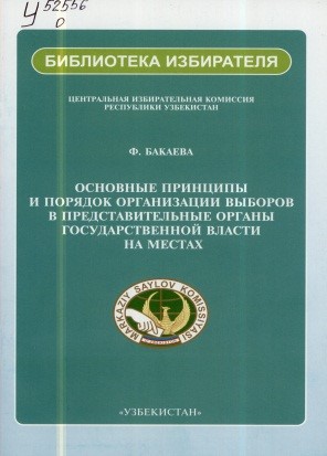 Основные принципы и порядок организации выборов в представительные органы государственной власти на местах [Текст] / Ф. Бакаева ; Центральная избирательная комиссия Республики Узбекистан ; . - Ташкент : Узбекистан , 2014 . - 40 с . - (Библиотека избирателя) . - 10000 экз. . - ISBN 978-9943-28-193-6 : 5300 сум.