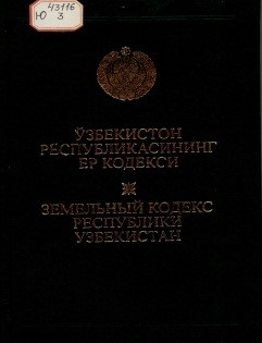 Ўзбекистон Республикасининг Ер кодекси [Matn]: (2014 йил 1 октябргача бўлган ўзгартиш ва қўшимчалар билан): (С изменениями и дополнениями на 1 октября 2014 года) Ўзбекистон Республикаси Адлия вазирлиги. - Расмий наш. - Тошкент: Адолат, 2014. - 160 б. - 2000 нусха. - ISBN 978-9943-4378-2-1 (муқовада): 10000 сўм