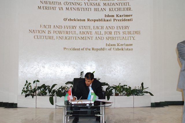 Председатель Национальной Канцелярии и архива султаната Оман Др. Хамад Ал Давани оставил свои пожелания в книге почётных гостей Национальной библиотеки Узбекистана, после чего гости получили на память подарки от Национальной библиотеки Узбекистана