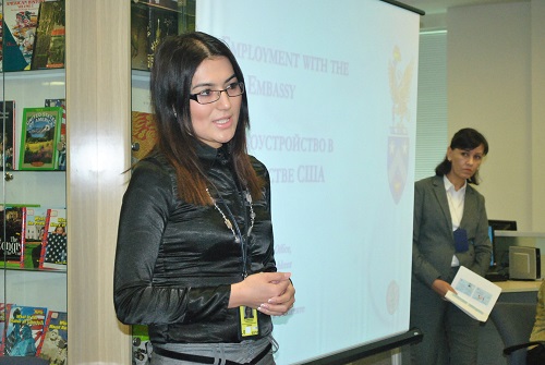 Тренер сотрудник посольства США в Узбекистане Хилола Мухамеджанова рассказала о процедуре подачи на вакансию, а именно, о способах и условиях подачи документов для трудоустройства или стажировки за рубежом или в солидных государственных организациях. Она также отметила, что такого рода тренинги регулярно организуются посольством США в Узбекистане и каждый заинтересованный в этом может посещать их.