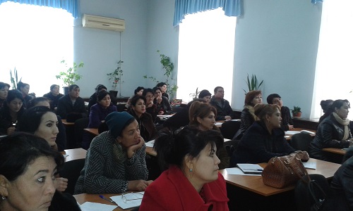 “Работы,проводимые в ИРЦ” – выступала руководитель ИРЦ профессионального колледжа лёгкой промышленности г.Джизака Ф.Мамадалиева.