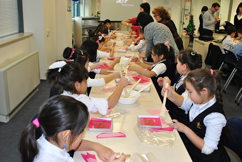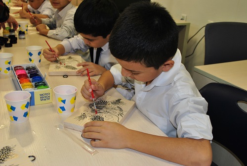 До церемонии открытия читального зала, сотрудники Посольства Республики Корея провели мастер-класс по созданию корейских сувениров для учеников специализированной общеобразовательной школы №50. Ученики научились собственноручно готовить подарки из досок и картона.