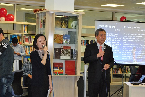 На церемонии с речью выступили А.Ходжаев – директор Национальной библиотеки Узбекистана им.Алишера Навоий, Рю Джунг Юнг - директор Национальной библиотеки Кореи, Ли Ук Хёнг Чрезвычайный и Полномочный Посол Республики Корея в Узбекистане. В исполнении членов корейского разговорного клуба «Мараги» прозвучали стихотворения и песни на корейском языке.