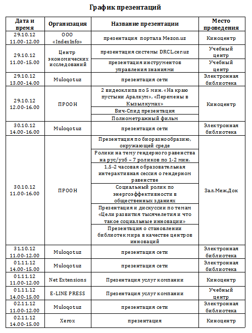 График презентаций
