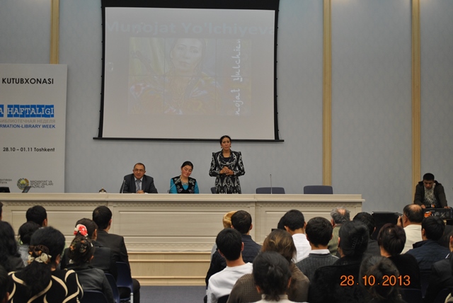 В Национальной библиотеке Узбекистана 28 октября в рамках недели INFOLIB UZBEKISTAN 2013 состоялась творческая встреча с народной артисткой Узбекистана – Муножат Йулчиевой.