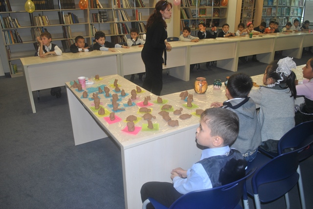 В читальном зале «Адолат» Национальной библиотеки для детей младшего школьного возраста совместно с арт-центром «Granart» 30 октября был проведен мастер-класс по лепке из натуральной красной глины под названием «Живая керамика». Цель проведение мастер-класса была развитие фантазии, пространственного мышления и мелкой моторики. В ходе мероприятия дети познакомилиь с глиной и лепили животных, рыб и птиц.