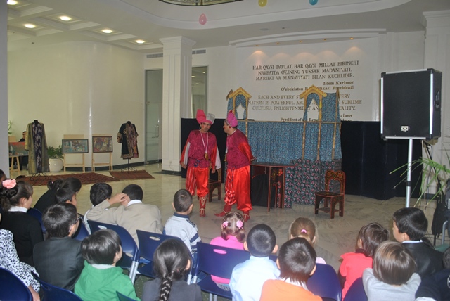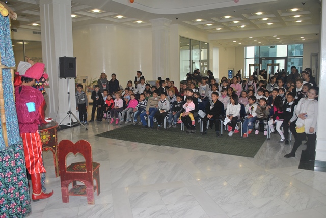 В Национальной библиотеке 30 октября совместно с Республиканским театром кукол была проведена Сказка-миниспектакль для детей школьного возраста по пьесе Д.Юлдашева «Весёлый балаганчик». Балаганчик - площадной театр, в котором разыгрывается представление разных жанров: театр кукол Петрушки, скоморошеские игры и др. Эти представления полны народного юмора и задора, обычно разыгрываются на больших ярмарках и базарах.