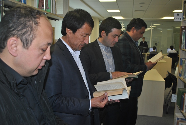 После регистрации артистов в качестве пользователей библиотеки, была организована экскурсия по библиотеке и Дворцу симпозиумов. При ознакомлении с библиотекой артисты особо отметили, что удобства, созданные в библиотеке, являются одним из высочайших достижений нашего государства.