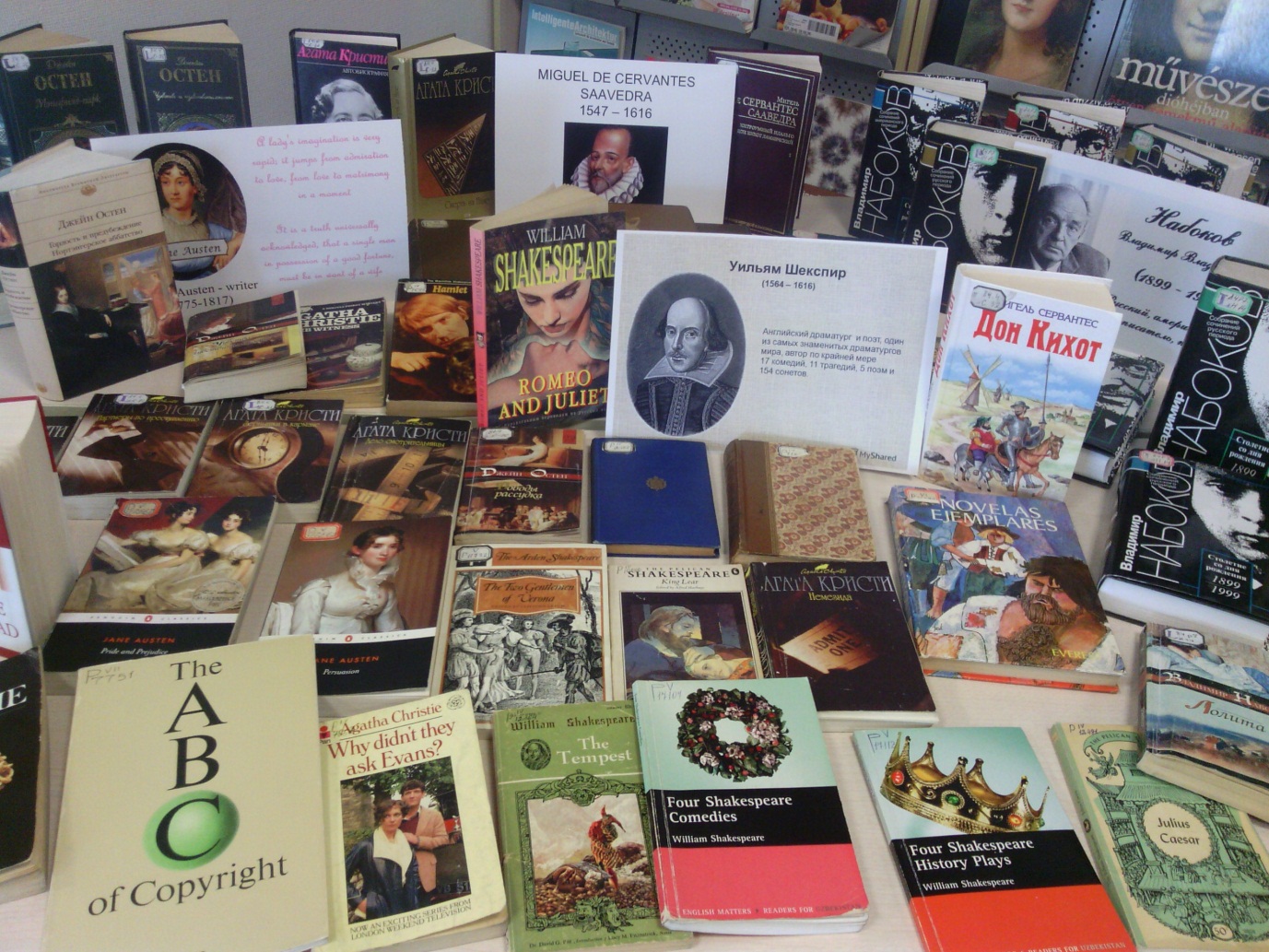 На выставке были представлены произведении великих литераторов, драматургов, романистов, писателей и поэтов как Уильям Шекспир, Чарльз Джон Диккенс, Мигель де Сервантес, Владимира Набокова и т.д.