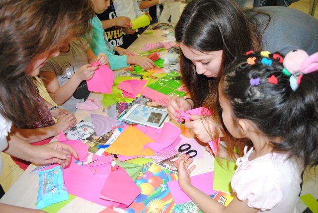 Приглашенные дети приняли активное участие в играх: «Оригами джаз», где они из цветных бумаг создавали разных животных; «Бумажный альбом» где дети украшали свои фото; «Цирк из картона» где дети вырезали из картона фигуры животных и раскрасили.