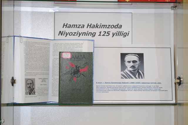 Milliy kutubxonaning ’’O’zekiston” o’quv zalida o’zbek xalqining yangi davr o‘zbek adabiyotining namoyandalaridan biri, shoir va dramaturg, bastakor va rejissyor, ma’rifatparvar-pedagog va jamoat arbobi Hamza Hakimzoda Niyoziyning 125 yilligi munosabati bilan kitob-rasmli ko’rgazma tashkil etildi. 1889 yil 6 martda Qo‘qon shahrida tabib oilasida tavallud topgan Hamza avval eski maktab va madrasalarda o‘qib, fors, arab tillarini, rus-tuzem maktabida esa rus tilini o‘rganishga muvaffaq bo‘lgan. Hamzaning badiiy ijodga qiziqishi barvaqt boshlangan. Hamza 1903 — 1914 yillar orasida Nihoniy taxallusi bilan 197 ta she’r yozib, ularni qo‘lyozma devoni shakliga keltirgan. Bu devonni tashkil etgan she’rlarida Hamza o‘zbek mumtoz adabiyoti an’analarining davomchisi sifatida namoyon bo‘ldi.